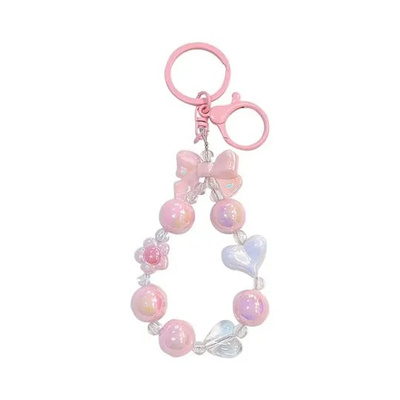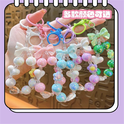 Colorful Bead Keychains Bow Heart Keyring Fashion Women Bag Accessories